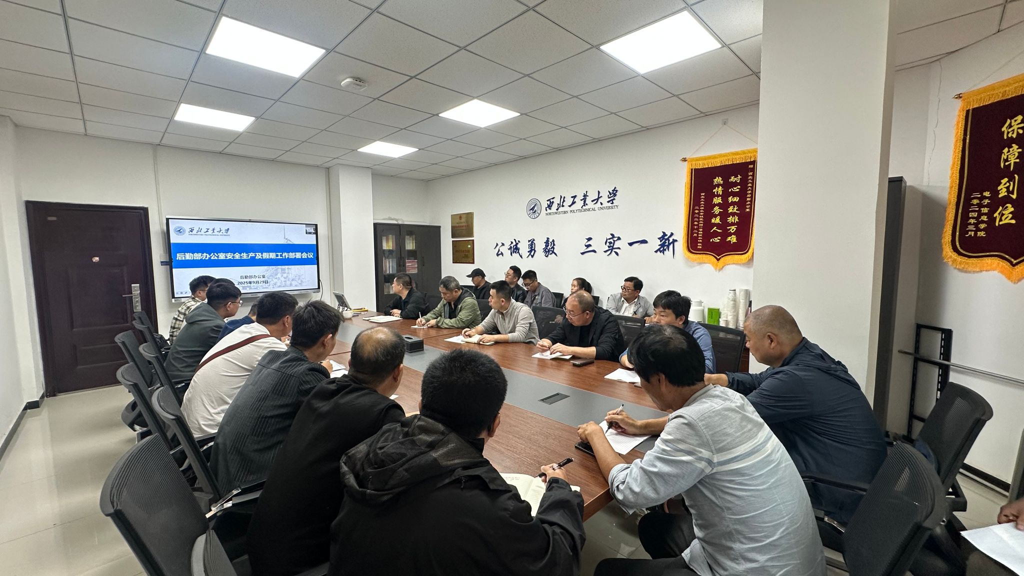 9月29日下午,后勤部办公室召开安全生产工作会议,针对国庆、中秋“双节”期间动力运行值班安排及施工安全工作进行专项部署。会议由后勤部办公室副主任韩争胜主持。
