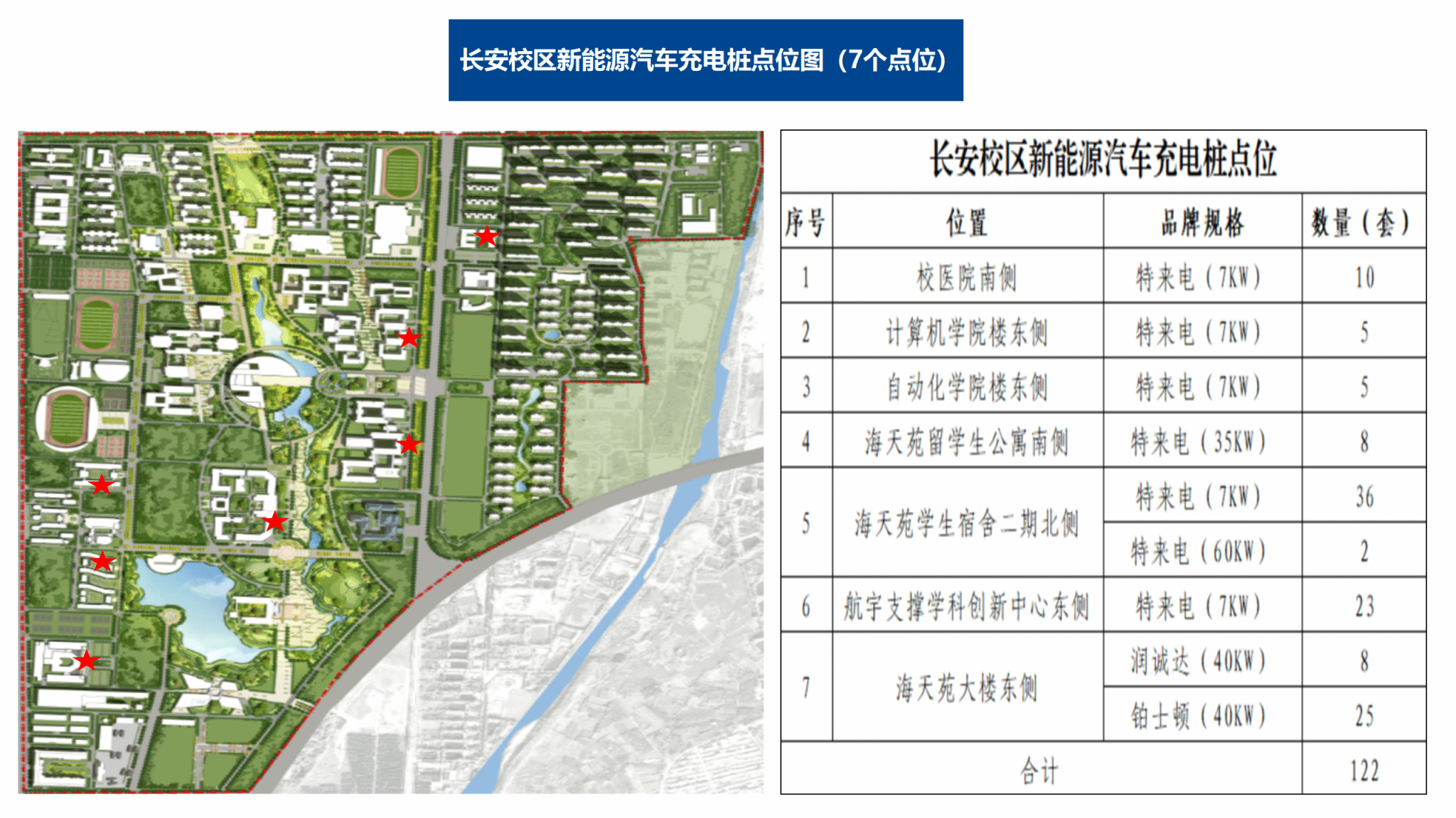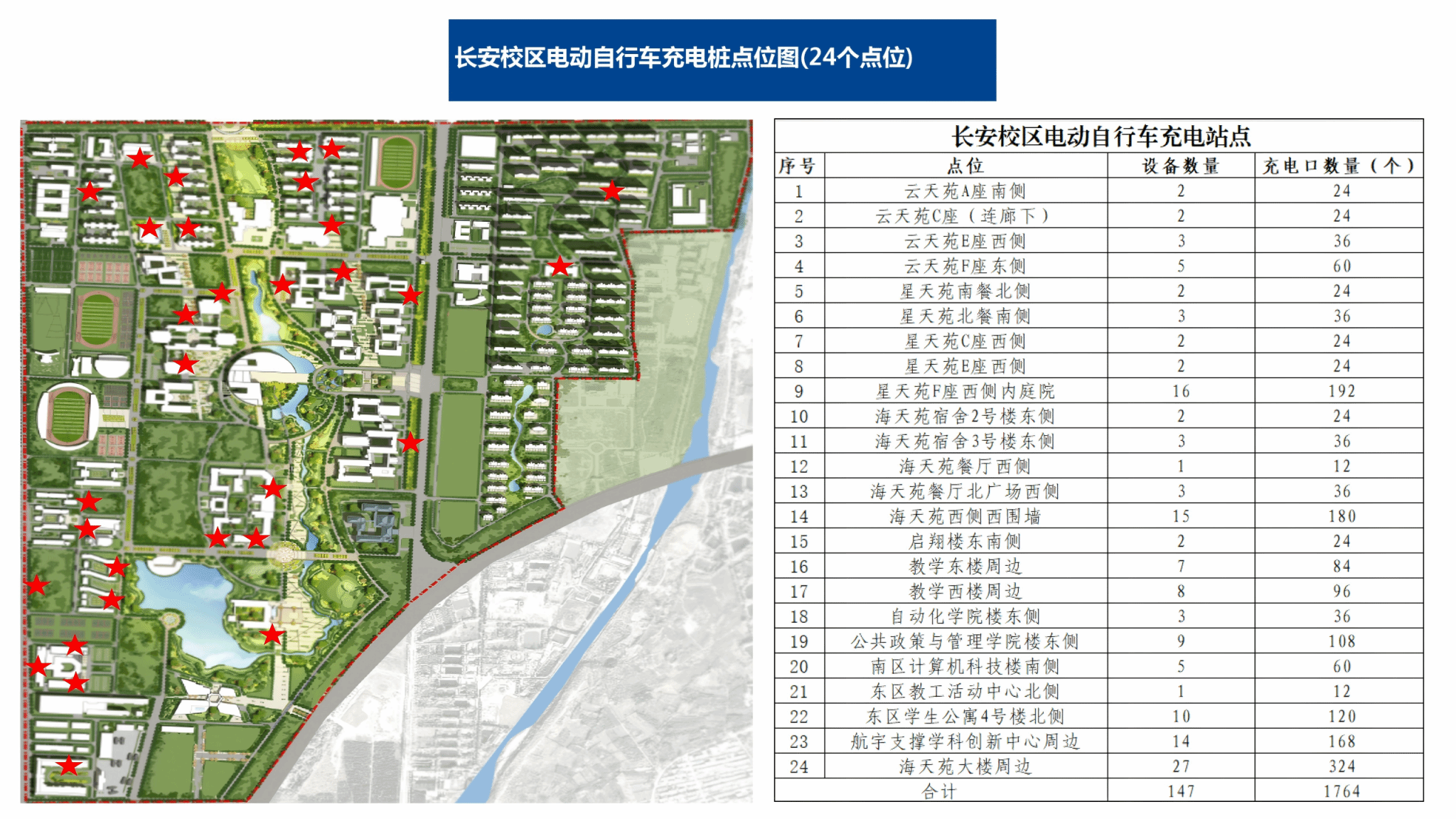 截至目前,友谊校区新能源汽车充电桩共有91套,电动自行车充电桩共有49套588个充电口;长安校区新能源汽车充电桩共有122套,电动自行车充电桩共有147套1764个充电口。师生可通过微信或专用APP扫码充电,具体数量及位置见下表。