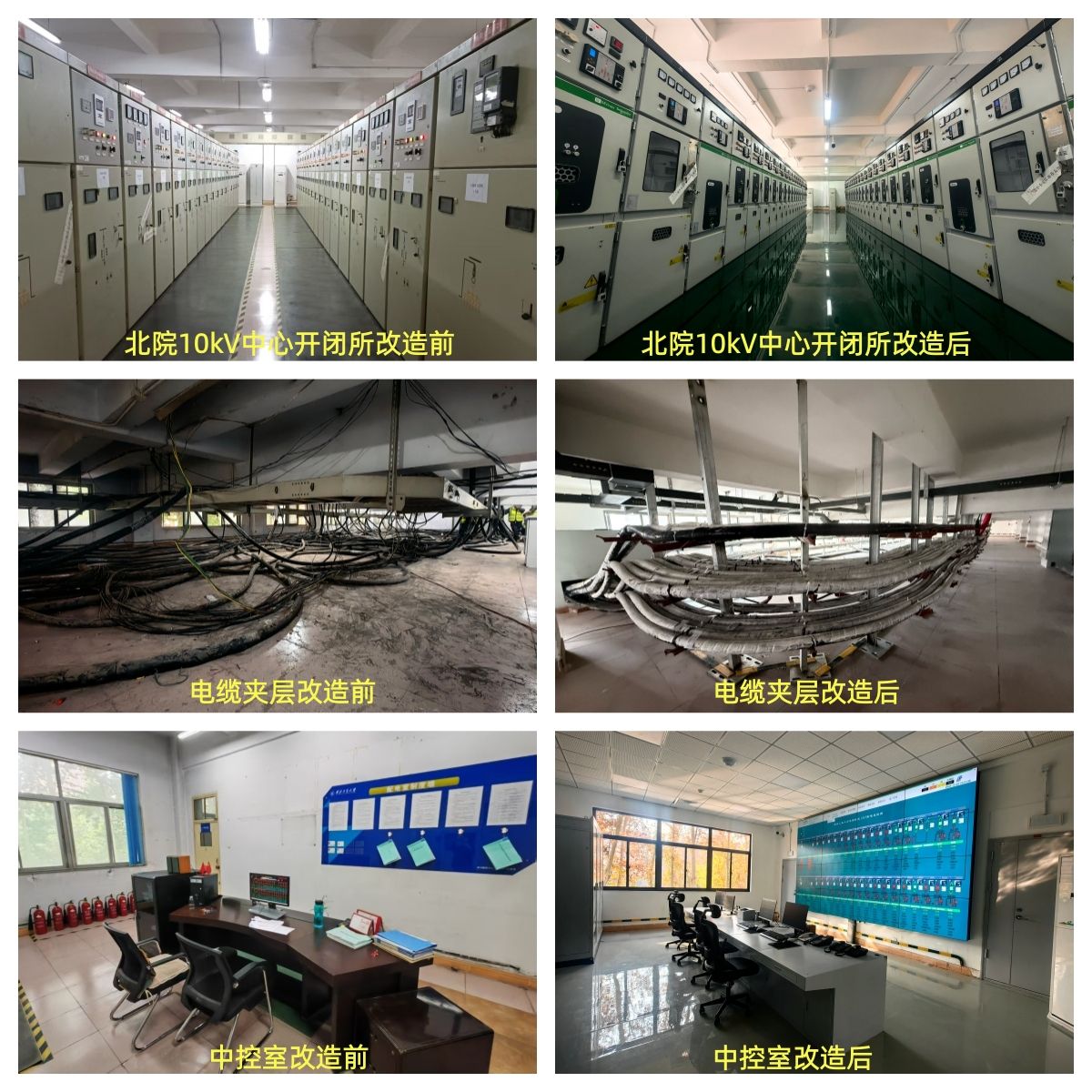 友谊校区北院10kV中心开闭所自2000年投运以来,承担着北院大部分楼宇和南院全部楼宇的供电任务,属于友谊校区配电网络的核心枢纽。经过25年的连续运行,逐步出现了配电柜柜体变形、绝缘件老化、部分功能失效等问题,严重影响友谊校区配电系统的安全可靠运行。为消除老旧设施运行安全隐患,保障供电安全可靠,后勤部办公室组织完成了北院10kV中心开闭所整体升级改造。